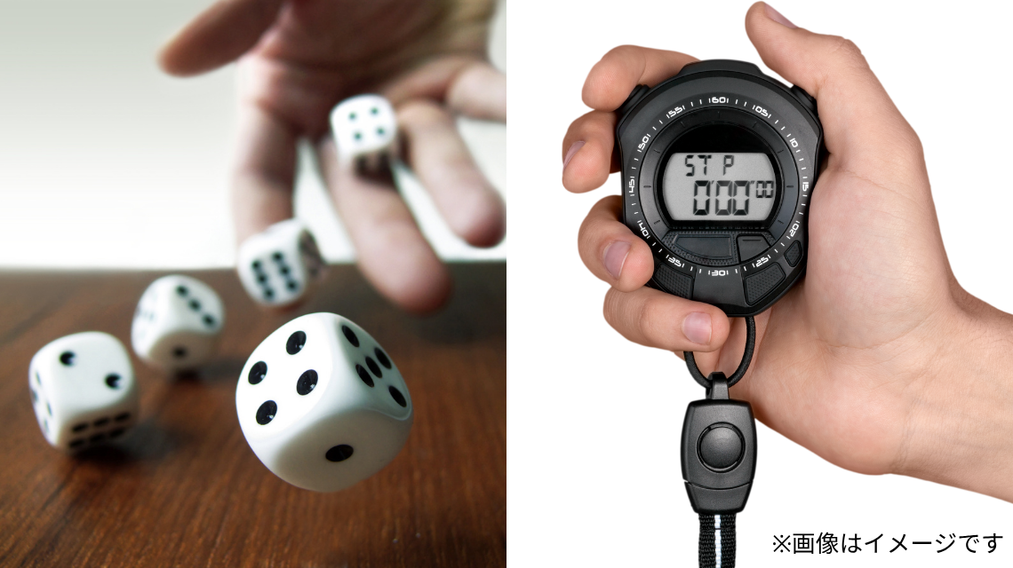 ②サイコロを2個投げて、3と2が揃って出るとMINIグッズをお渡しします。